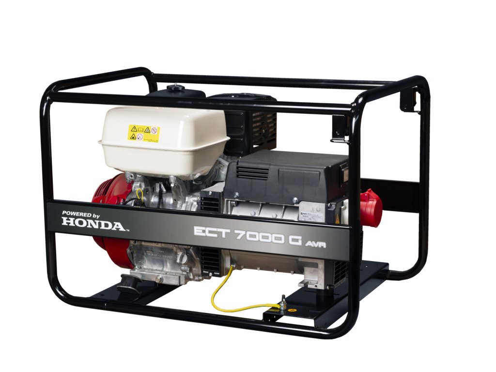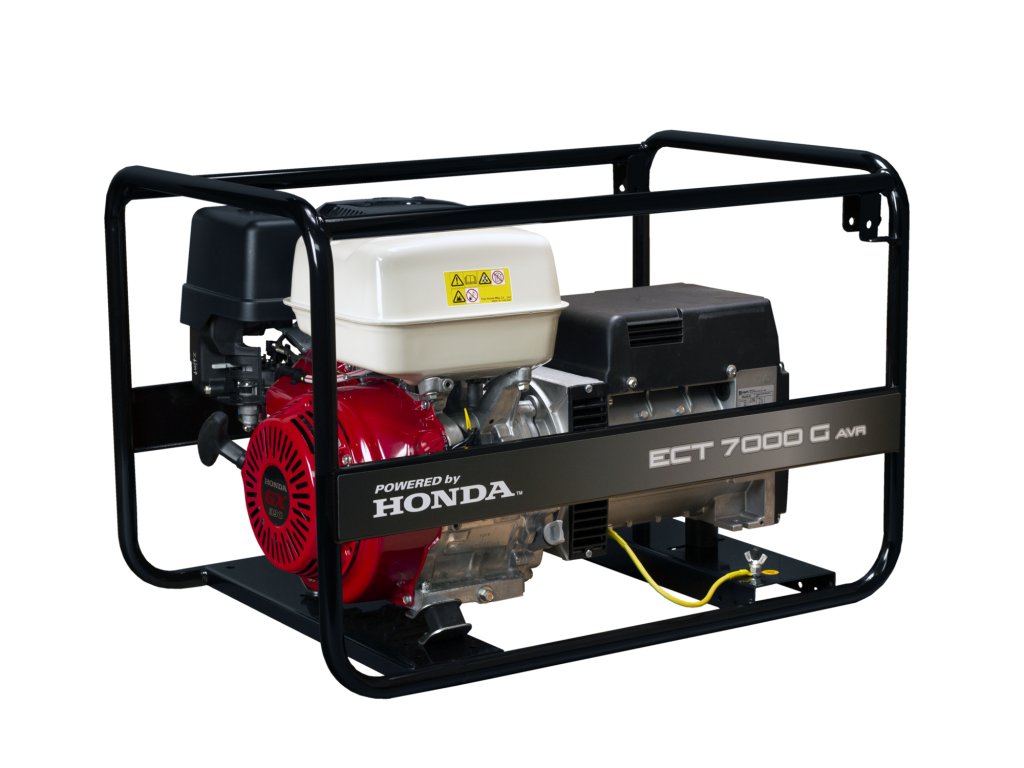 Elektrocentrála ECT 7000G AVR: model velké, třífázové elektrocentrály s regulací výstupu indukčním trafem. Výkonný a vysoce odolný alternátor pohání spolehlivý profesionální motor řady GX s dlouhou životností a to vše ukotveno v pevném a odolném ocelovém rámu.