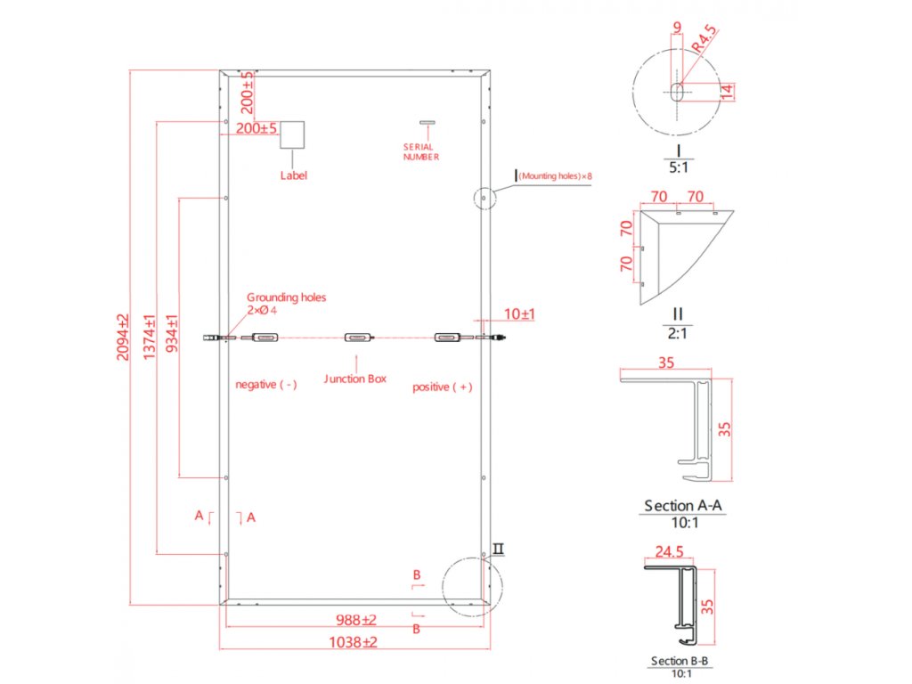 Vysoce efektivní monokrystalické panely ve standardním rozměru (2094 x 1038 x 35 mm) za příznivou cenu pro rychlou návratnost investice. Navíc všechny dodávané panely mají pozitivní toleranci nominálního výkonu.